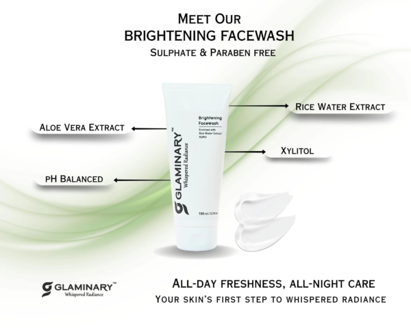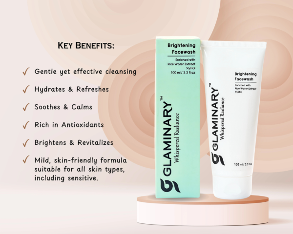 Glaminary Brightening Face Wash gently purifies while preserving skin's natural balance. Enriched with mild surfactants, botanical extracts, Xylitol, Aloe Vera, and Rice Water, it cleanses deeply without stripping - leaving skin soft, hydrated, and visibly radiant after every wash.